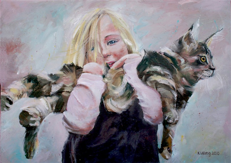 "Pippi-jente" med kjøttmeis". 40 x 50 cm. Akryl på lerret